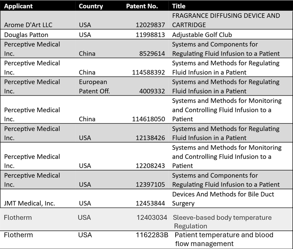 Doug Patton’s Patents for 2025 - his new total is now over 200 worldwide.